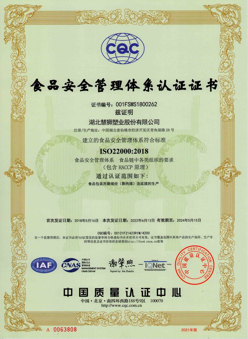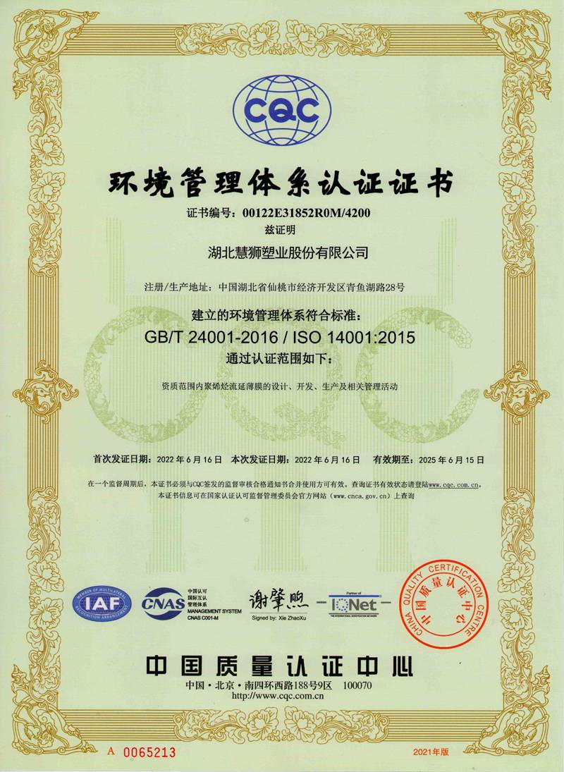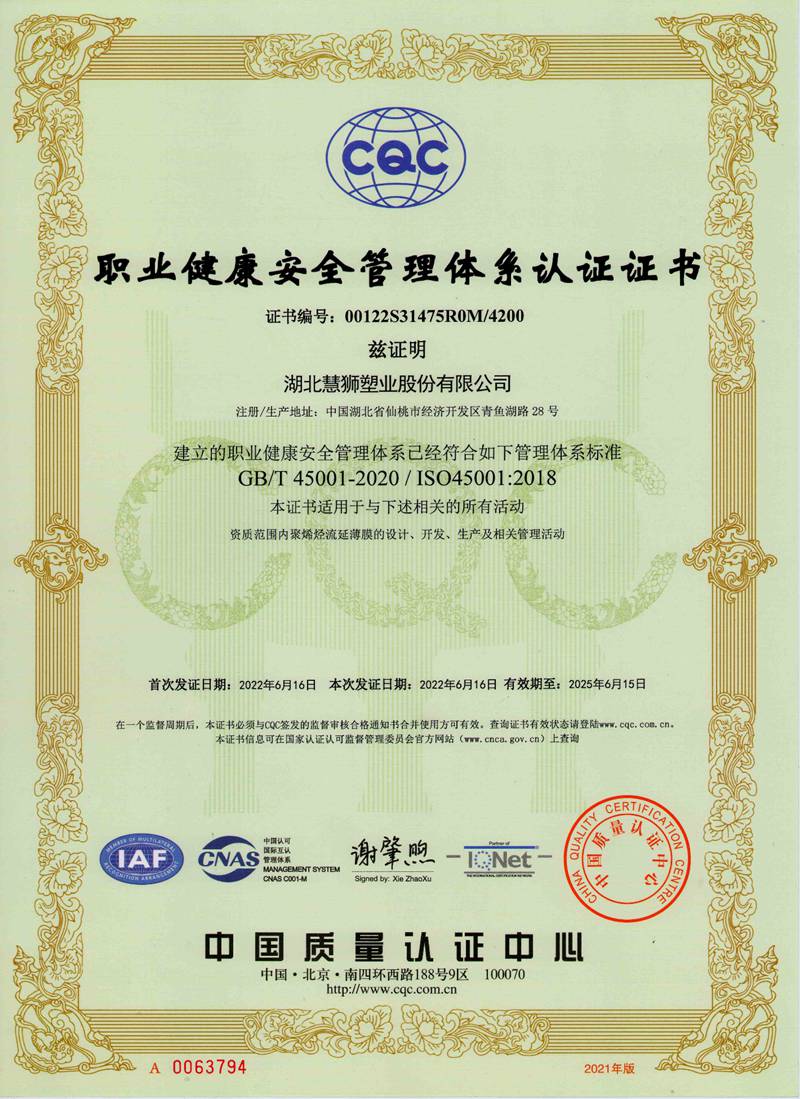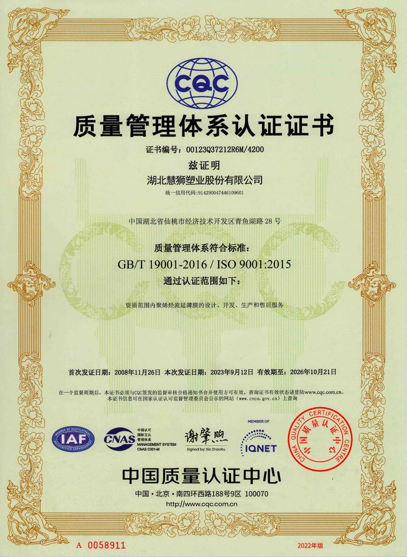 湖北慧獅塑業股份有限公司是一家專業從事研發、生產、銷售高性能聚烯烴流延薄膜的高新技術企業。